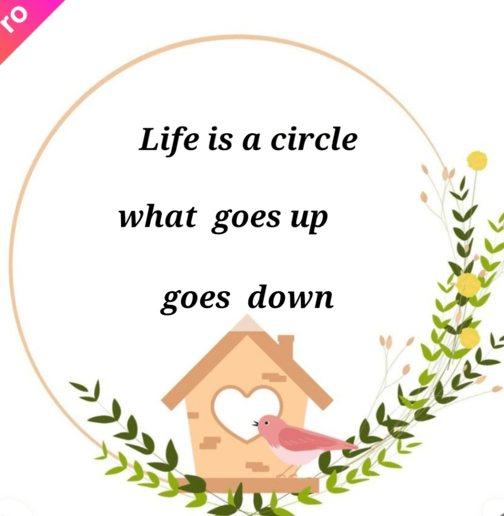 Life is a circle. It goes round and round in circles. Sometimes, you are happy, and then all of a sudden, you are lonely. The saddest thing is that someone will be so in love and it turns sour very fast. We have to do something to make our love last. When we walk in love , our hearts will ponder and get excited again to see what is best in our preferred love. Love is magic. We don’t know why we are in love. It is something with that person who made us fall in love. Life is a circle. We have to walk with it with love to make our love last.Life is a circle of happiness and sadness. While we enjoy our happy moments, sadness will ruin our day. But sadness taught me lessons to be strong and stay awesome. Nothing lasts forever because life is a circle. When we were born, we had nothing. When we leave this world, we can not take anything. Wheeeeeeeeeeew!